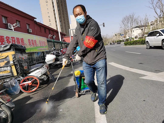 社區(qū)防疫值守工作是我們國家疫情防控的重要手段之一,消殺工作也是對社區(qū)值守人員、進出居民健康防疫保障的有效舉措。為了保證消毒效果,我每天到崗后,都會第一時間進行消殺。小到社區(qū)出入口的消毒腳墊,大到返京人員必經(jīng)的登記崗亭都是定期消殺的重點區(qū)域。還有卡口執(zhí)勤地面,乃至外賣電動車的停放區(qū)我都要讓我的“戰(zhàn)友”光顧一遍。