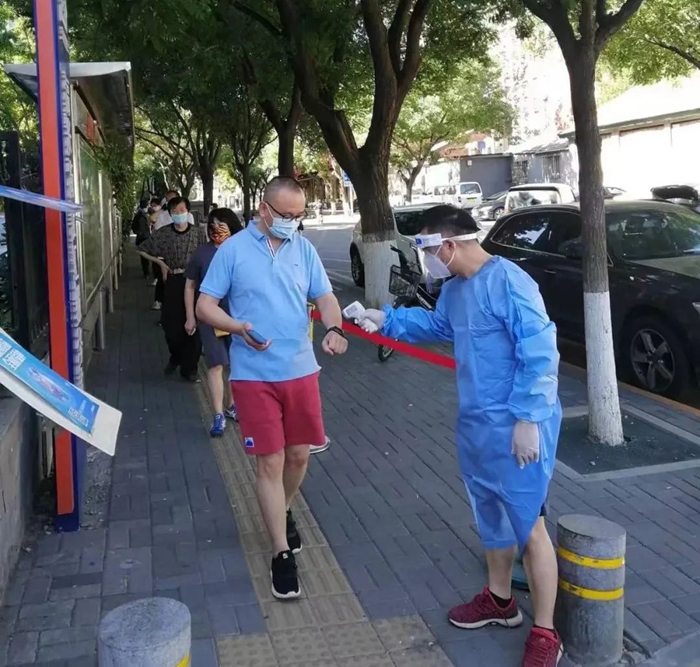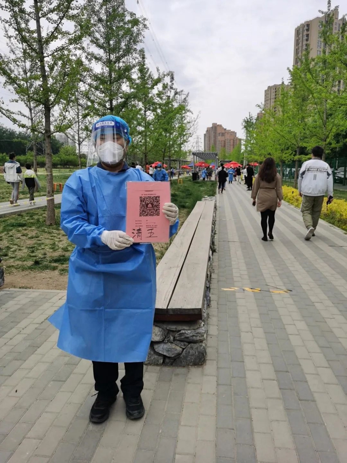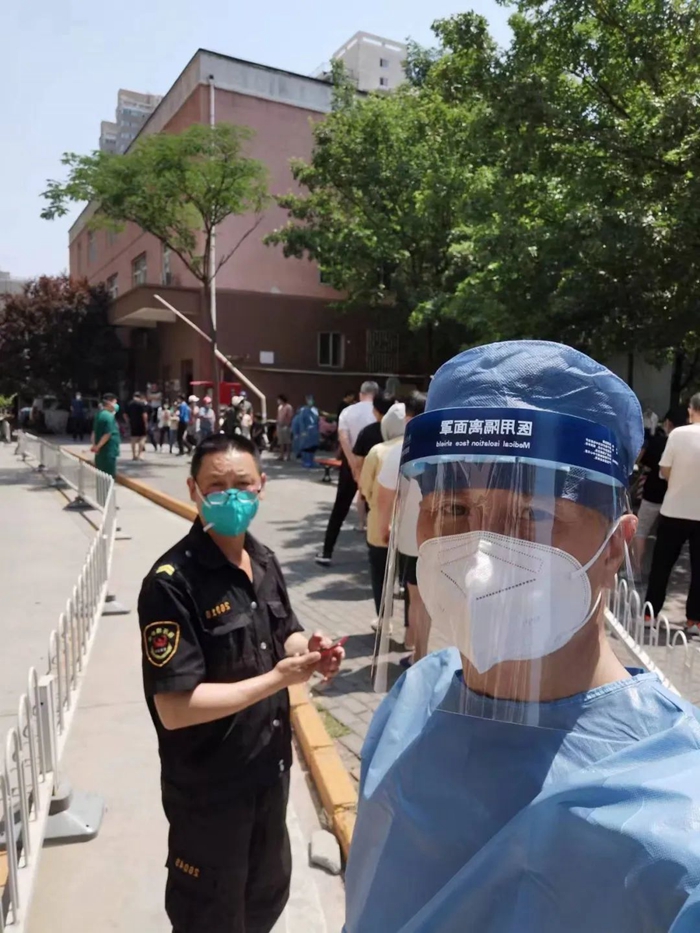 5月的天氣,溫度說升就升,每天2次4個小時的防護服穿下來,下崗時每每全身濕透,但我一點也不后悔,看著手機里每次錄入600人、700人、800人等的信息時,內心升起一種無比的自豪,北京全員核酸檢測里有我的一份汗水。