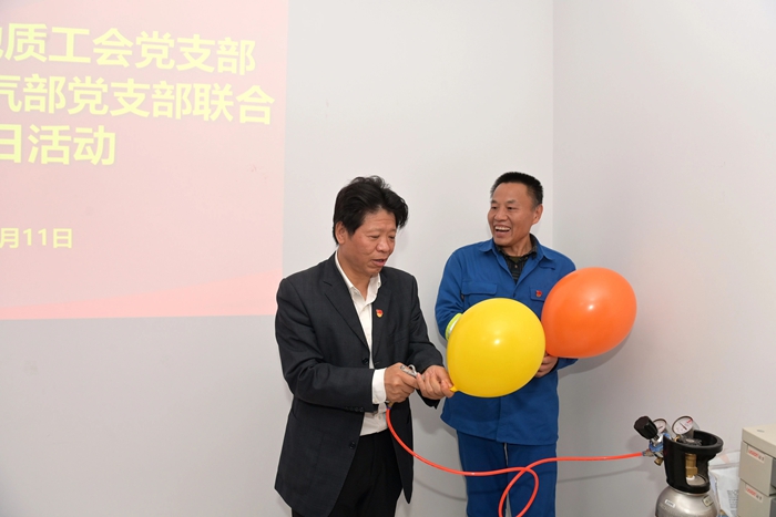 在交流中,北普公司包裝氣部黨支部書記王紹武介紹了工廠生產(chǎn)運行情況,并重點匯報了包裝氣黨支部全體黨員為高質(zhì)量完成此次服務(wù)保障任務(wù),及時成立臨時黨支部,強化黨建引領(lǐng),發(fā)揮戰(zhàn)斗堡壘作用;黨員同志們從生產(chǎn)、運輸、現(xiàn)場操作,到落實安全流程、人員培訓(xùn),始終發(fā)揮先鋒模范作用,以硬核擔(dān)當(dāng)帶領(lǐng)一線骨干,把好操作關(guān)、守好安全線,最終圓滿完成保障任務(wù)的感人經(jīng)歷。中國能源化學(xué)地質(zhì)工會黨支部的黨員同志們還在現(xiàn)場人員指導(dǎo)下,親手進(jìn)行氣球充裝,親身感受重大活動服務(wù)保障中的緊張氛圍。