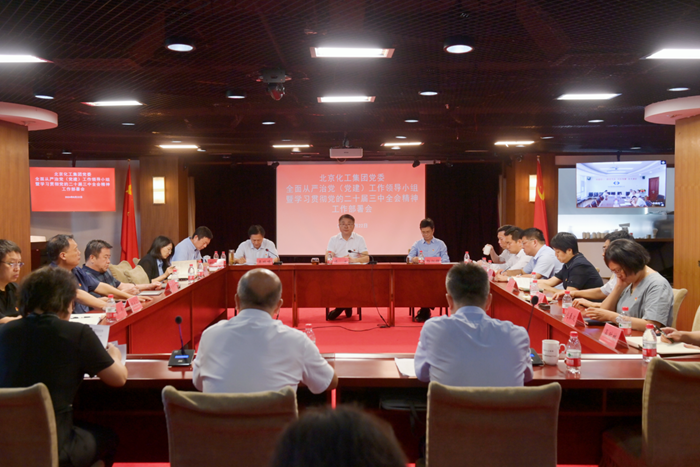 為深入學習貫徹黨的二十屆三中全會精神,持續(xù)推進全面從嚴治黨向縱深發(fā)展,8月22日,北京化工集團黨委召開全面從嚴治黨(黨建)工作領導小組暨學習貫徹黨的二十屆三中全會精神工作部署會,黨委書記、董事長陳宇作總結講話;黨委副書記、董事、總經理楊旭輝出席會議;黨委副書記吳瑞峰主持會議。